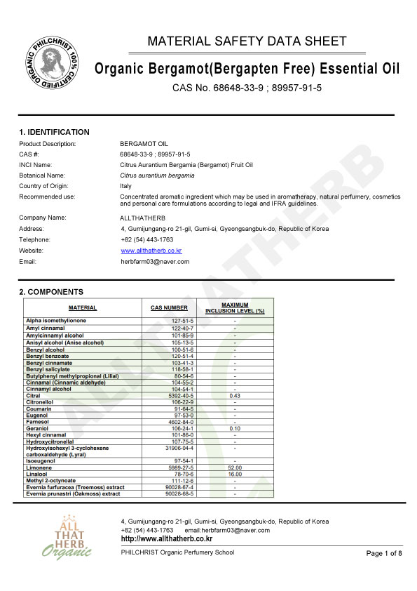 HOME > ¾Æ·Î¸¶¿ÀÀÏ > À¯±â³ó¿¡¼¾¼È¿ÀÀÏ > Bergamot (¹ö°¡¸ø) Bergapten Free USDA À¯±â³ó ¿¡¼¾¼È¿ÀÀÏ