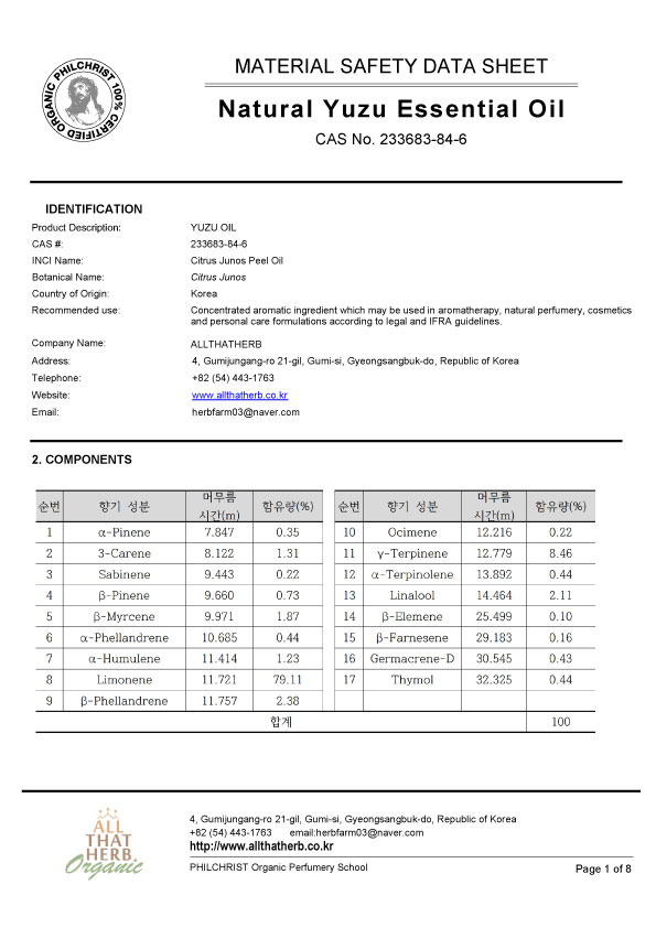 Botanical Name: Citrus junos Note: Top Note Part of the Plant: Peels Country of Origin: Korea Extraction Method: Steam Distilled and Cold Pressed Aromas: Bright, strong, and faintly floral citrus aroma with balsamic notes in the drydown Yuzu essential oil is widely cherished in personal perfumes and is also commonly used in cosmetics, fragrances, and aromatherapy. This unique citrus fruit offers various potential benefits, including anti-inflammatory properties and support for heart health. Yuzu oil has a refreshing and uplifting aroma that blends mandarin and grapefruit notes, making it especially popular with children. It also pairs well with other citrus oils such as lemongrass, orange zest, and grapefruit.