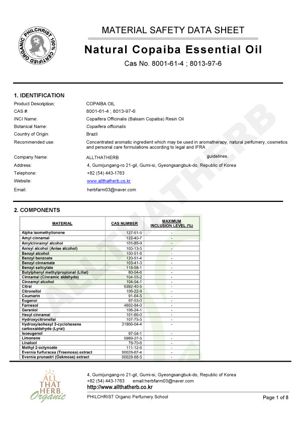 Note:Base Note Part of the Plant:Natural Oleoresin (Balsam) Country of Origin:Brazil Extraction Method:Steam Distilled