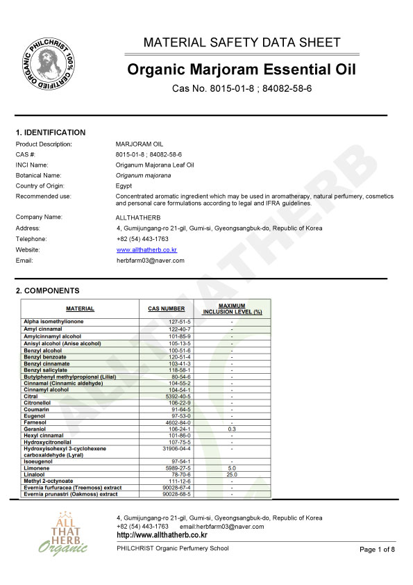 Botanical Name: Origanum majorana Note: Middle Note Part of the Plant: Leaves and Flowering Tops Country of Origin: Egypt Extraction Method: Steam Distilled Aromas: Sweet, minty, and woody