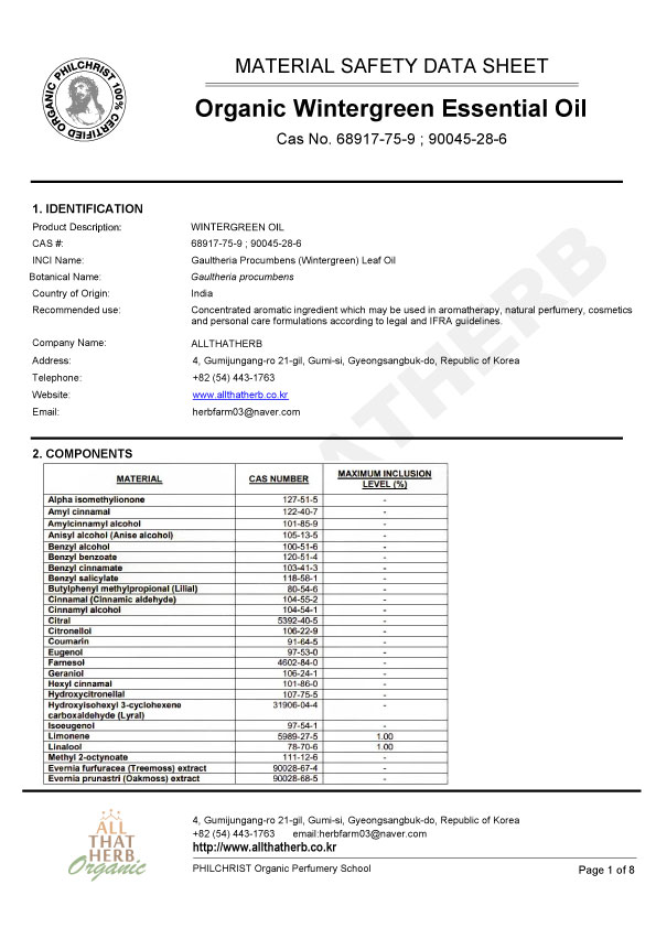 Botanical Name: Gaultheria procumbens Note: Middle Note Part of the Plant: Leaves Country of Origin: India Extraction Method: Steam Distilled Aromas: Strong, characteristic, and sweet-minty woody aroma